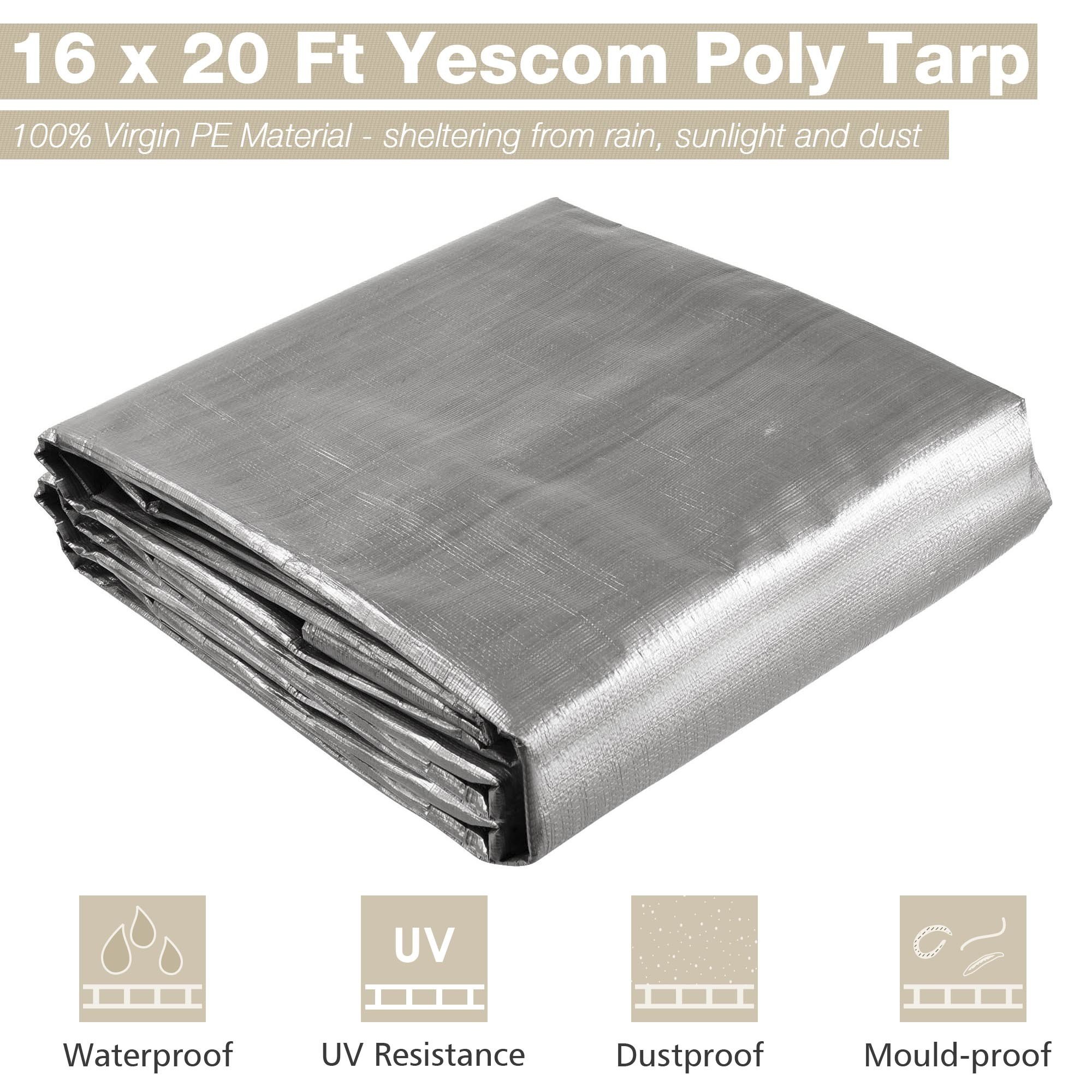 - Strong & Durable Shelter - 16 x 20 ft silver and black poly tarp forms a strong and durable shelter from sunlight; rain and dust; cooler underneath in the summer; Long lifetime up to 3 years; it features good ability of anti-aging for long-time use