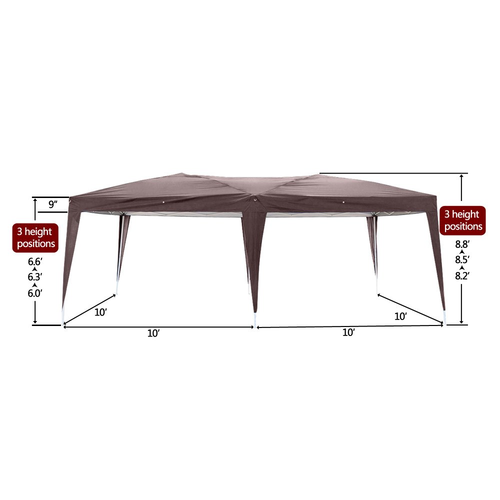 Introductions:Tent is a practical item for daily use, widely seen in the outdoor activities such as camping or picnic. If you happen to need a tent for own use, this 3 x 6m Two Windows Practical Waterproof Folding Tent may be a great choice. It is designed into 4 sides, with 2 windows that ensure good ventilation. Made of premium 210D oxford material and steel materials, it is of great durability and solid structure. Waterproof fabric makes it suitable for outdoor use. It is easy to install and use. Most of all, it is quite space-saving when it folds. A convenient and stylish item!Features:1. New and in a good condition2. First-rate steel and 210D oxford materials, fine workmanship and meticulous treatment3. Excellent ventilation with 2 windows4. Won't take up too much space when it is folded5. It is a sort of waterproof item, fit for outdoor use especially6. Protect you from scorching sun light and rain7. Button design, easy to install and disassemble the tent, protect the hand8. Each side are more than a hole, used to wear pull rope tied nail fixed, tent more stableSpecifications:1. Material: 210D Silver Oxford Fabric & Steel2. Color: Dark Coffee3. Dimensions: (118 x 236)" / (300 x 600)cm (L x W)4. Weight: 49.2 lbs / 22.3 kg5. Waterproof: Yes6. Suitable for: All Kinds Of Events7. Height of Sides: 78.74" / 200cm8. Height of Roof: 100.39" / 255cm9. Steel Pipe Diameter: Small Pipe: (0.98 x 0.98)" / (2.5 x 2.5)cm (L x W) Big Pipe: (1.18 x 1.18)" / (3.0 x 3.0)cm (L x W)10. Crossed Pipe/Top Pipe Diameter: (0.39 x 0.71)" / (1.0 x 1.8)cm (L x W)11. Door Quantity: 2 Pcs12. Window Quantity: 2 Pcs13. With Periphery Cloth: YesPackage Includes:1 x Tent1 x Carry Bag1 x Instruction