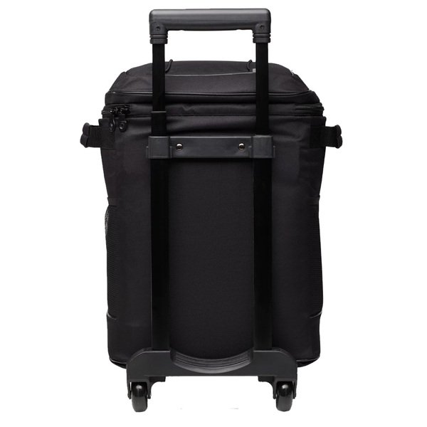 CHILLER™ 42-Can Soft-Sided Portable Cooler with Wheels - BlackMeet the CHILLER™ 42-Can Soft-Sided Portable Cooler with Wheels. Whether you’re bringing drinks to the game or keeping the fam fueled on a hike, this cooler’s easy to transport thanks to its telescoping handle and durable wheels. This cooler’s exterior is made from recycled polyester fibers so you’ll help reduce your impact on the environment.Features:Portable: Telescoping handle and durable wheels for easy transport; zippered front and inside mesh pockets for storing ice packs and other extrasRecycled Fabric: Exterior fabric is made from recycled polyester fibersSuperior Ice Retention: TempLock™ Insulation keeps food and drinks cold for 12 hours or moreLeakproof: Welded seams prevent leaksEasy To Clean: Removable antimicrobial* and stain-resistant hard plastic liner helps prevent odor, mildew, and moldHolds up to 42 cansSpecifications:Color: BlackWeight (lbs): 6.7Exterior Height (inch): 19.972Exterior Length (inch): 13.315Exterior Width (inch): 13.315Cooler Cup Holders: NoCooler Wheels: Yes*This product does not protect users against food-borne bacteria. Clean thoroughly after each use.