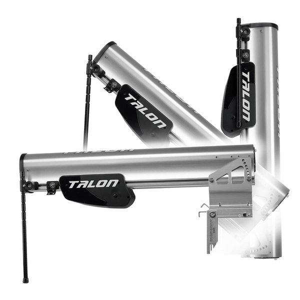Talon Tilt BracketEasy-tilt action accommodates for low clearance areas and boat storage. Marine-grade, anodized aluminum construction for strength and durability. Adjustable deck support provides stability while tilting. Requires use of a Talon Adapter Bracket - not intended for use with Talon direct-mounted to hull of boat. Designed for temporary clearance - not intended for transport (on water or trailering). Stainless steel hardware and Talon crutch support included. Compatible with all three-stage, 8 ft., 10 ft., and 12 ft. Talon shallow water anchors.